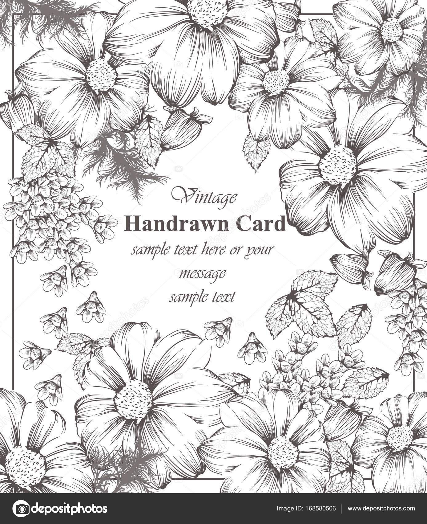 Vintage Flower Line Drawing / Premium Vector Vintage Card With Flowers Line Art - Download minimalist botanic herbs and wild flowers in vintage style for free.